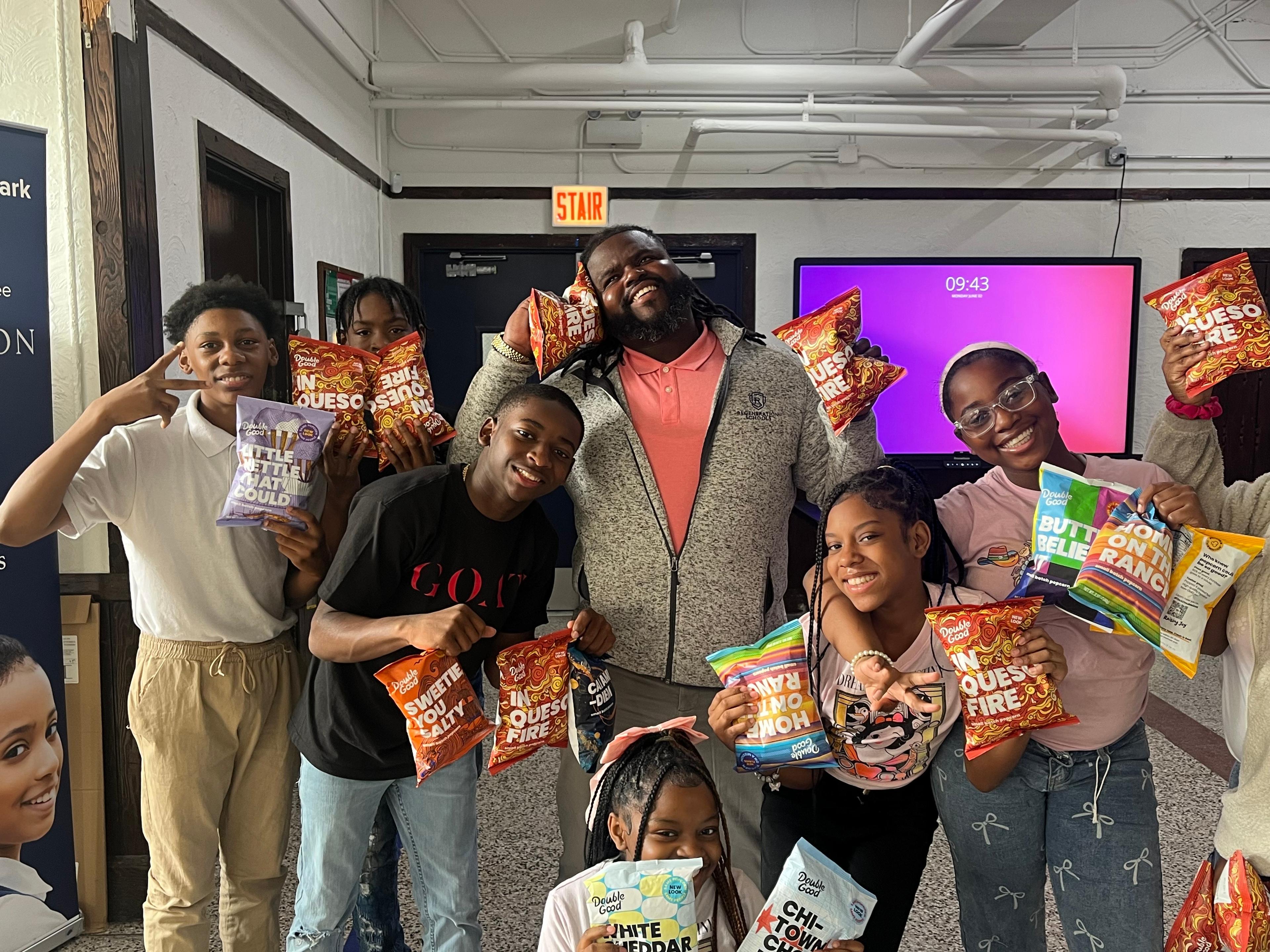 Through Double Good’s Donate Joy program, Henigan was able to give back to his staff too. He handed out donated popcorn as a small thank you.